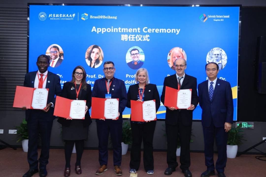 2025年10月20日至10月22日,第23屆中國國際人才交流大會、第二屆北航全球合作伙伴峰會(UPS)分別在上海與杭州召開。能源與動力工程學(xué)院聯(lián)合北航巴西中心邀請包含巴西科學(xué)院院士Julio Romano Meneghini在內(nèi)的23位外國專家參加兩場大會,并借此機(jī)會共商前期已簽署合作協(xié)議的“北航-圣保羅大學(xué)綠色航空實驗室(BUGA Lab)”在杭州校園落地建設(shè)事宜,為Julio Romano Meneghini教授和Hamilton Varela教授頒發(fā)聘書。