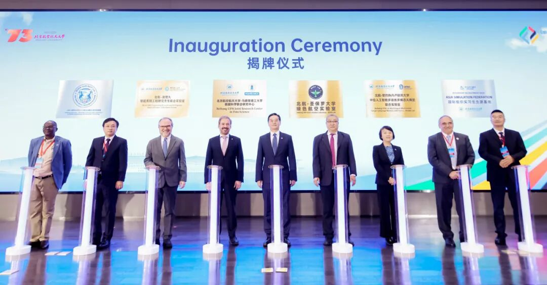 開幕式上還舉行了聯(lián)合實驗室揭牌儀式,由王云鵬校長和與會嘉賓為6個聯(lián)合實驗室揭牌。其中,由能源與動力工程學(xué)院牽頭建設(shè)的“北航-圣保羅大學(xué)綠色航空實驗室”(BUAA-USP Green Aviation Lab,BUGA Lab)瞄準(zhǔn)綠色航空能源與動力技術(shù),未來將成為北航與全球伙伴共享資源、協(xié)同創(chuàng)新的重要實體平臺,依托北航國新院在杭州校園實體化建設(shè)。