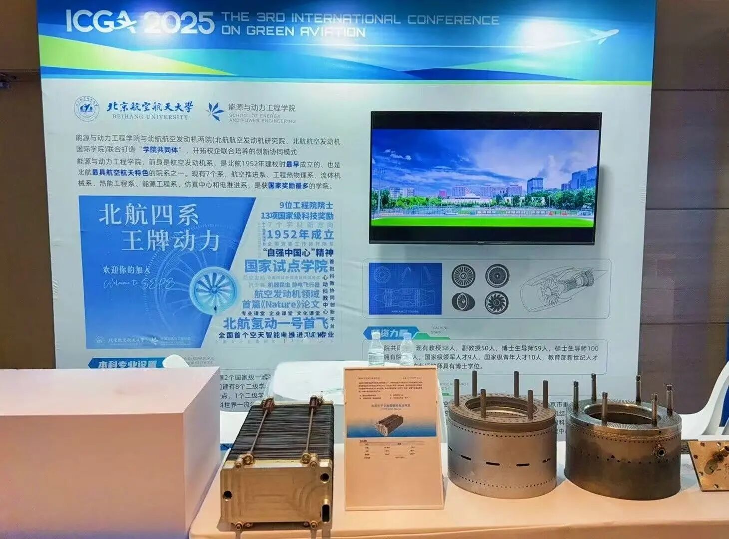 此外,本屆大會會場同期設(shè)置了北京航空航天大學展位,展示了我院近期取得的最新科研成果:榮登《Nature》雜志封面的自然太陽光驅(qū)動的高效飛行器、氫微管燃燒室、高溫質(zhì)子交換膜燃料電池等前沿科技成果,以及學院展板和視頻宣傳材料。通過此次展覽,動力學院展現(xiàn)了在綠色航空與新能源領(lǐng)域的科研實力和創(chuàng)新潛力,吸引了眾多參會者的關(guān)注。