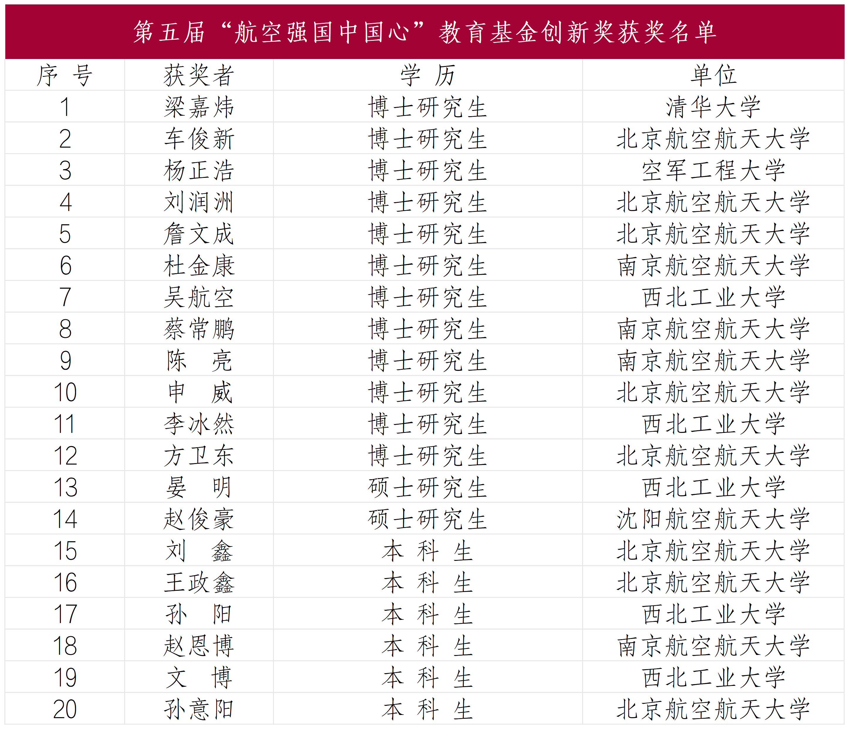 據(jù)悉,“航空強國中國心”教育基金于2013年由北航教育基金會發(fā)起設(shè)立,陳光教授、陳懋章院士、劉大響院士各捐贈50萬元共同創(chuàng)立。基金設(shè)有突出貢獻獎與創(chuàng)新獎兩大獎項,每兩年評選一次,專門獎勵國內(nèi)高校相關(guān)專業(yè)中為航空發(fā)動機領(lǐng)域作出突出貢獻的青年教師及表現(xiàn)優(yōu)異的學(xué)生。目前已累計接受社會捐款1400余萬元。“航空強國中國心”教育基金評審已舉辦五屆,全國共21位青年學(xué)者和101位優(yōu)秀學(xué)生獲獎。作為航空發(fā)動機領(lǐng)域人才培養(yǎng)的重要平臺,基金的持續(xù)運作有效激發(fā)了青年一代的科技創(chuàng)新熱情,為行業(yè)輸送了大批優(yōu)秀人才,對國家航空發(fā)動機事業(yè)的長遠(yuǎn)發(fā)展具有深遠(yuǎn)意義。