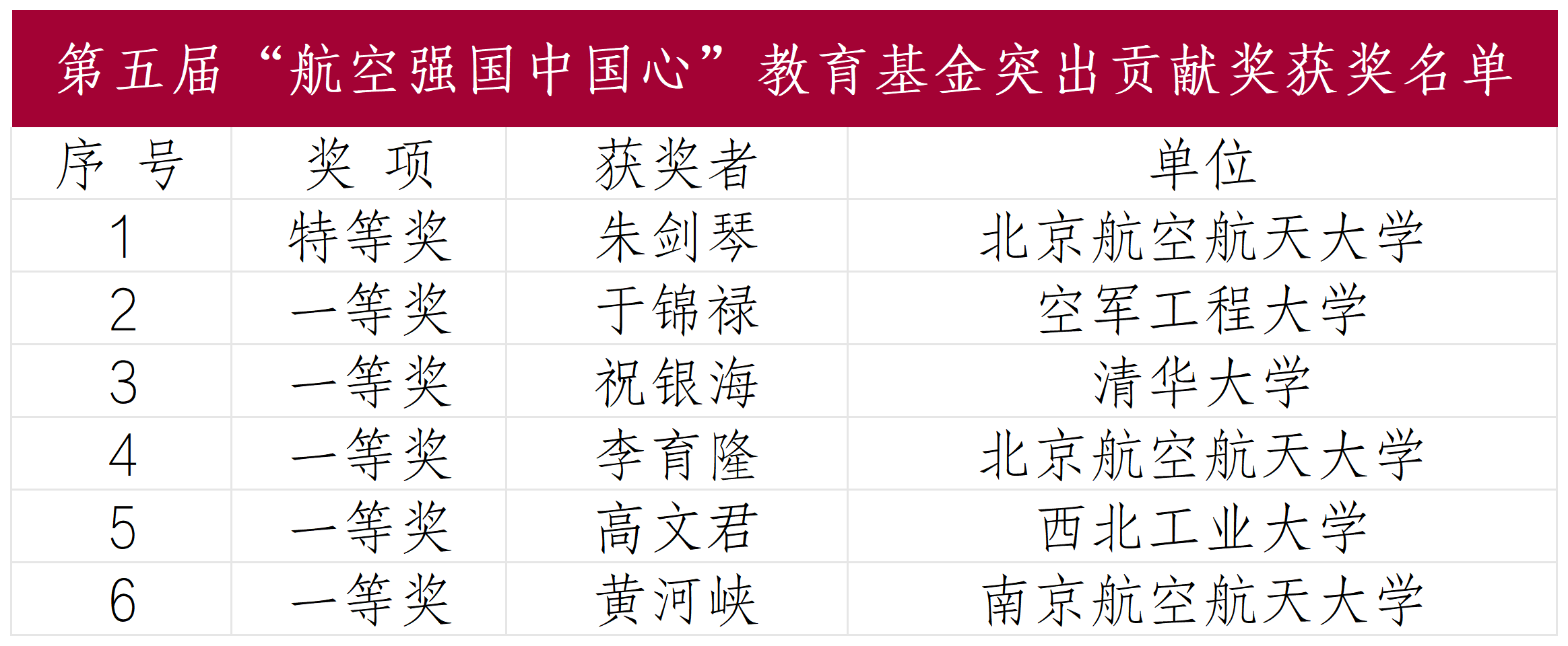 在“航空強國中國心”教育基金獎項頒發(fā)環(huán)節(jié),捐贈人代表劉大響院士和中國航空學(xué)會秘書長陳暘為朱劍琴、于錦祿、祝銀海、李育隆、高文君、黃河峽6位突出貢獻獎獲得者頒獎。