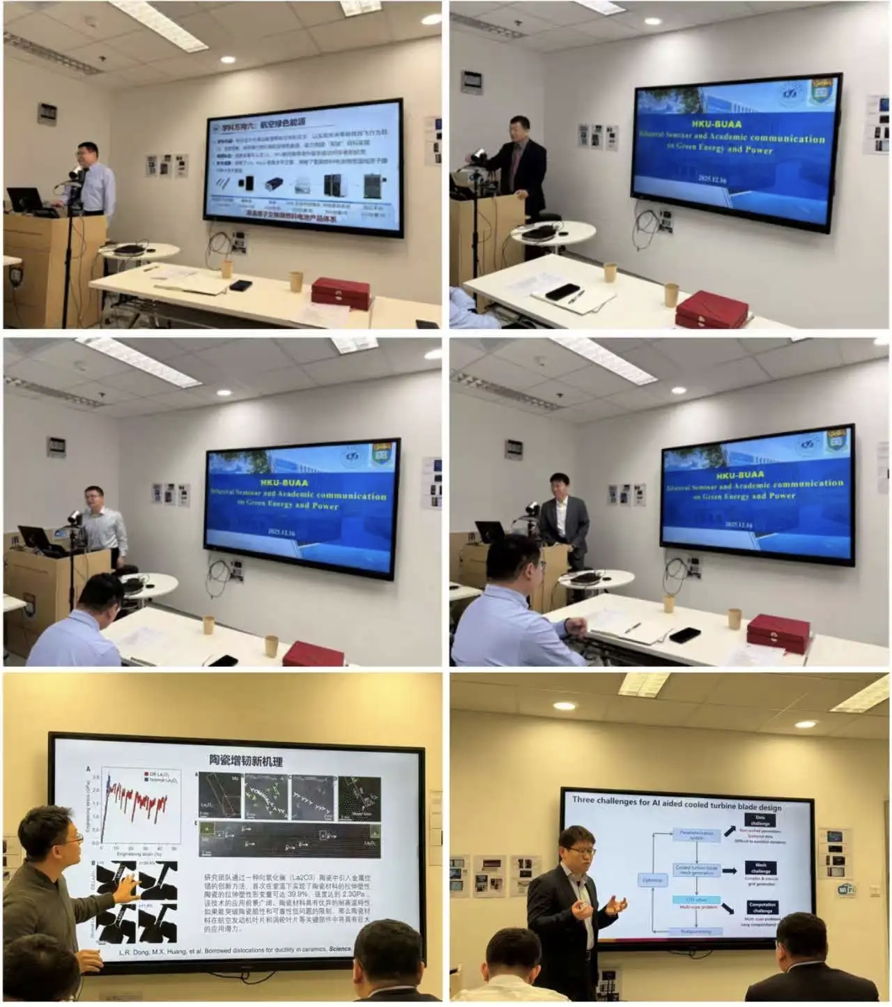 隨后,雙方圍繞清潔能源與綠色動(dòng)力主題開展雙邊研討會(huì)(HKU-BUAA Bilateral Seminar and Academic communication on Green Energy and Power)。雙邊研討會(huì)由香港大學(xué)黃立錫教授主持,會(huì)議立足于能源與動(dòng)力學(xué)科基礎(chǔ)科學(xué)問(wèn)題,面向國(guó)際學(xué)術(shù)前沿,涉及適航技術(shù)、先進(jìn)結(jié)構(gòu)材料、發(fā)動(dòng)機(jī)總體性能、無(wú)人機(jī)智能控制、葉輪機(jī)械流體力學(xué)、低空技術(shù)等多個(gè)學(xué)科方向。雙方與會(huì)人員共做10余個(gè)高水平的學(xué)術(shù)報(bào)告,并就相關(guān)熱點(diǎn)科學(xué)和工程問(wèn)題展開了熱烈地討論,增進(jìn)了雙方的互相了解,極大地促進(jìn)了雙方在相關(guān)學(xué)科的交叉互補(bǔ),為未來(lái)深入開展合作研究及原始創(chuàng)新打下了良好基礎(chǔ)。
