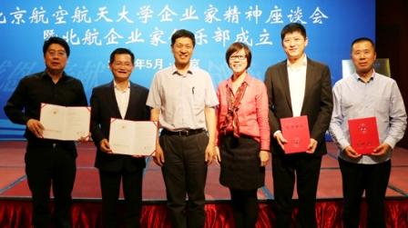 2015年5月13日下午,北航企業(yè)家精神座談會暨企業(yè)家俱樂部成立儀式在唯實(shí)國際文化交流中心舉行。北航企業(yè)家俱樂部的正式成立,是新時期下學(xué)校校友工作的一種全新探索,必將增進(jìn)校友與母校的情誼,有力推動各校友企業(yè)之間、企業(yè)與學(xué)校之間實(shí)現(xiàn)資源共享、優(yōu)勢互補(bǔ),促進(jìn)共同發(fā)展,以北航的優(yōu)良傳統(tǒng)引導(dǎo)中國的企業(yè)家承擔(dān)起社會責(zé)任,讓事業(yè)有成的校友有更多機(jī)會回報(bào)母校的辛勤培育。